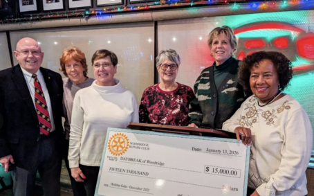 On January 13, 2026, the Woodridge Rotary Club gathered at Shanahan's Food & Spirits to kick off another year of generosity and giving. Rotary's President, Debbie Mascitti and Fundraising Chair, Rich Moore presented the check to DayBreak's chairperson Elevene Bryant.
