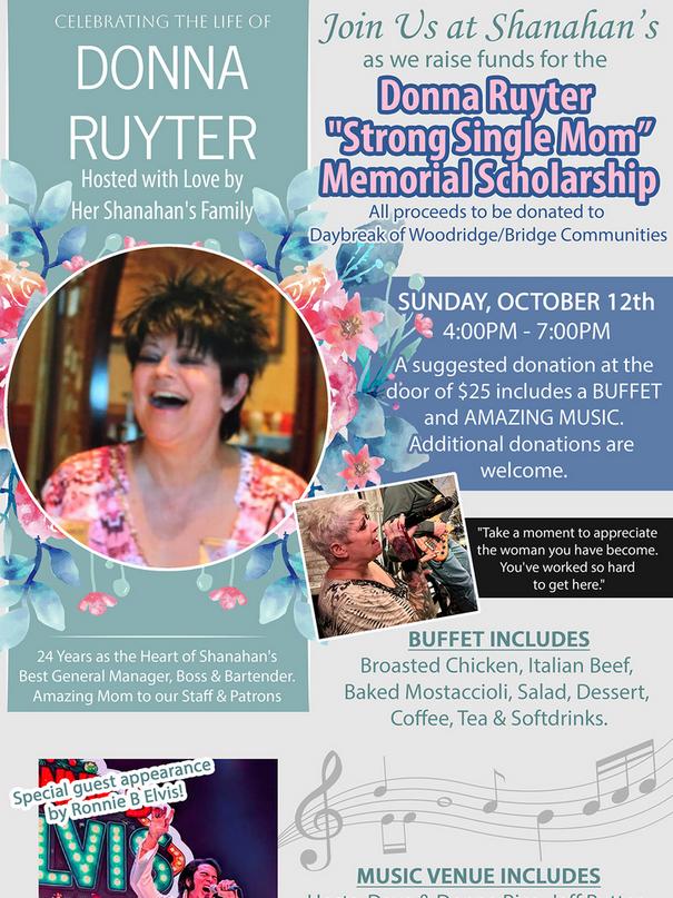 Join us at Shanahan's to celebrate Donna Ruyter’s life with music, food, and friends — all in support of the Strong Single Mom Memorial Scholarship.
